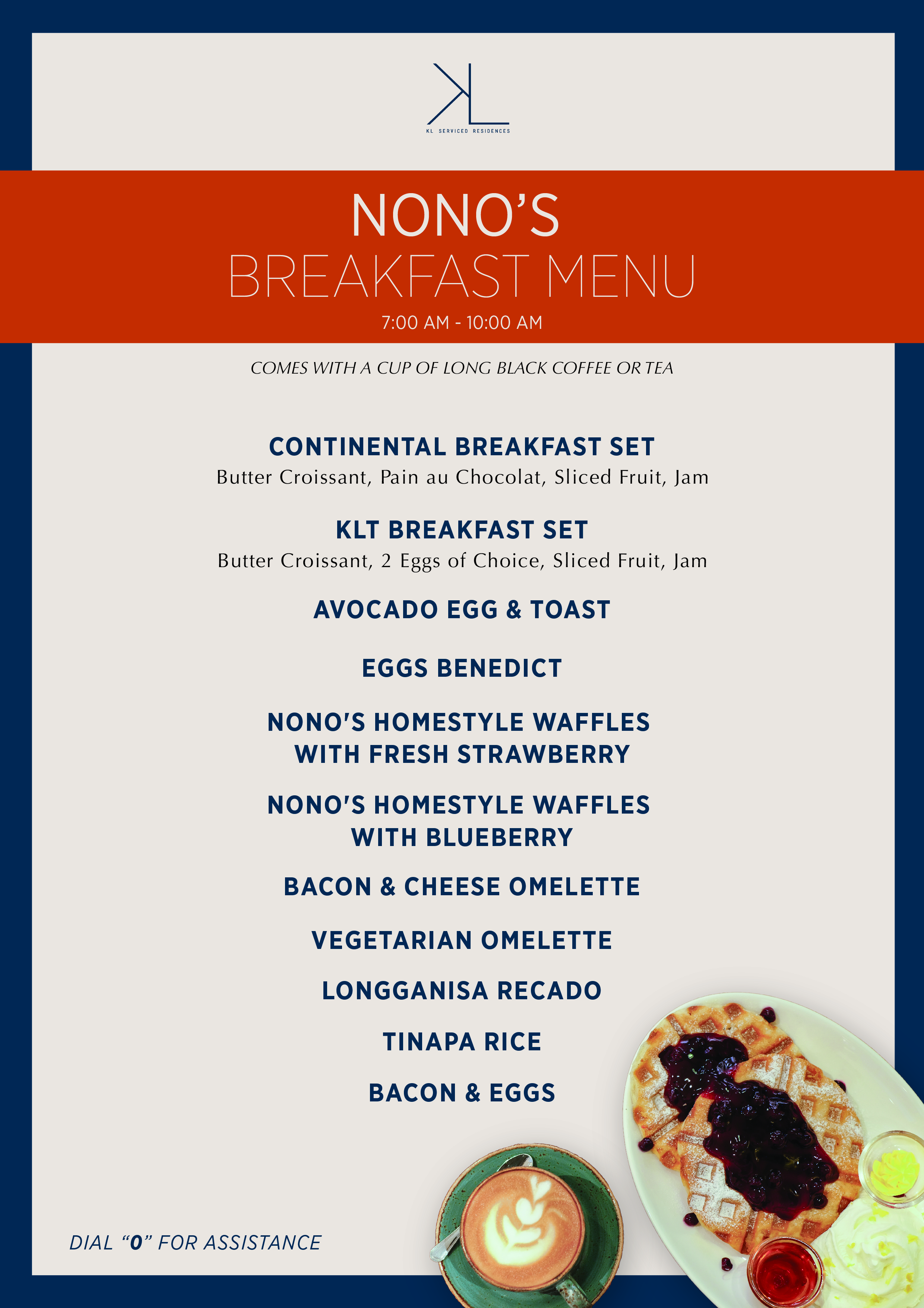 Breakfast is served dine-in only from 6:30 AM to 10:30 AM at Php 550 per guest. To avail, please drop by the Front Desk to secure your breakfast vouchers.